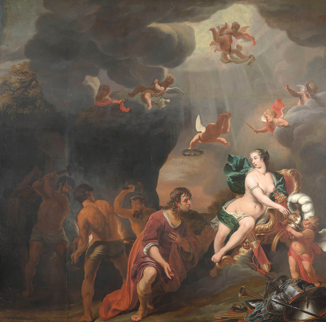 Aeneas ontvangt door voorspraak van Venus een nieuwe wapenrusting in de smidse van Vulcanus