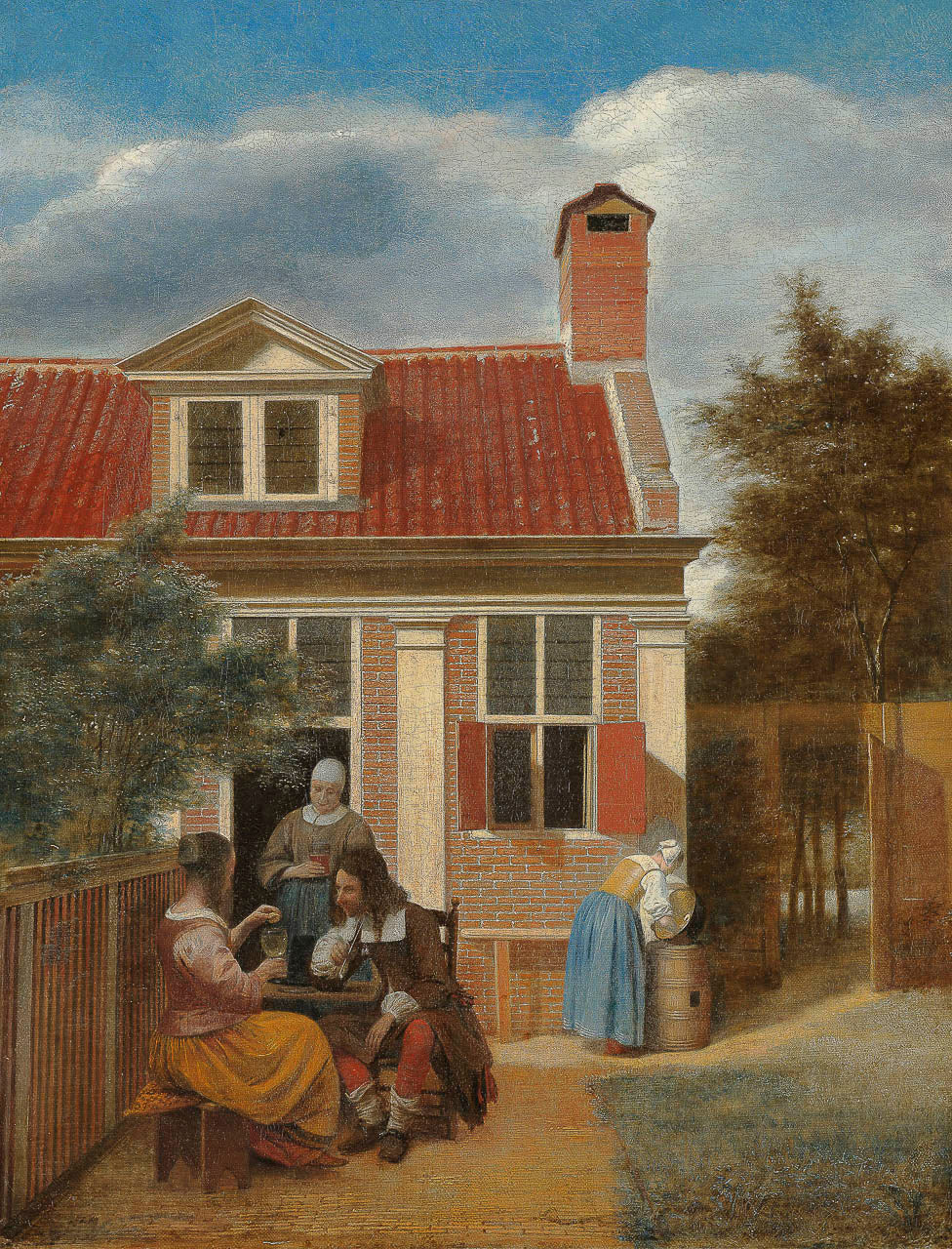 Een gezelschap op de plaats achter een huis