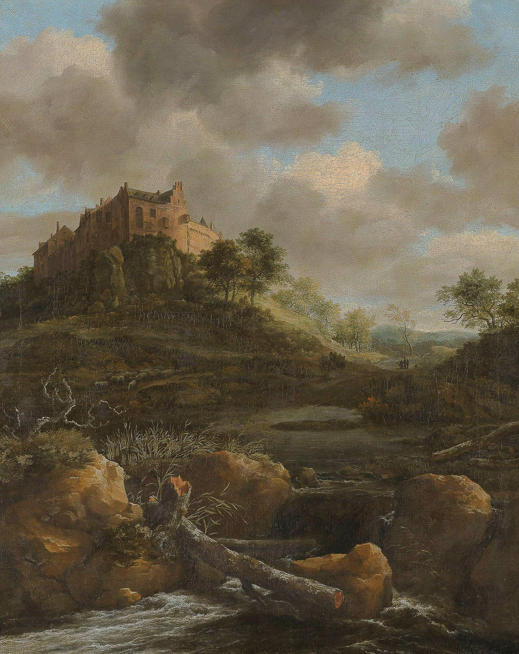Landschap met ruïnes, vee en herten