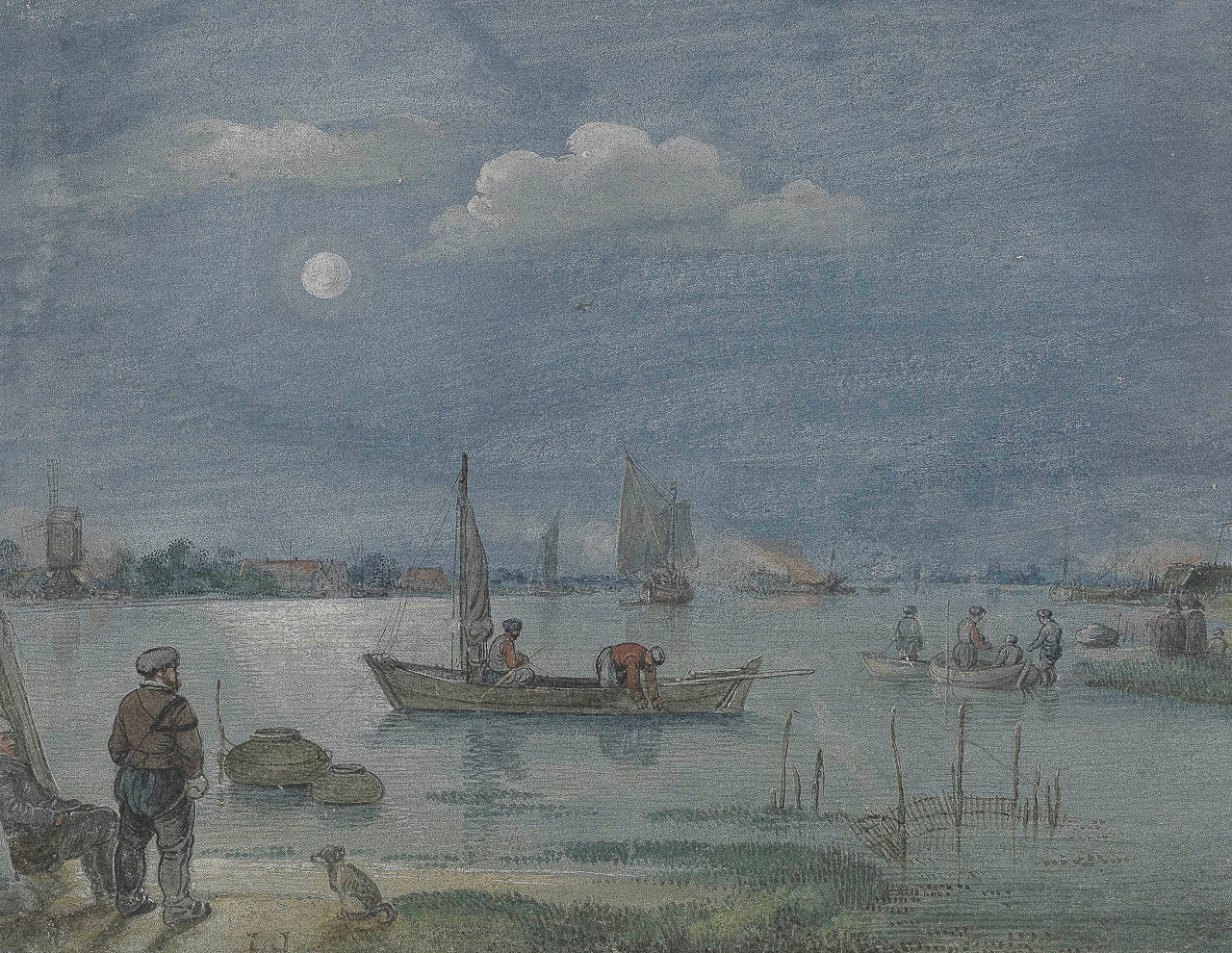 Vissers bij maanlicht